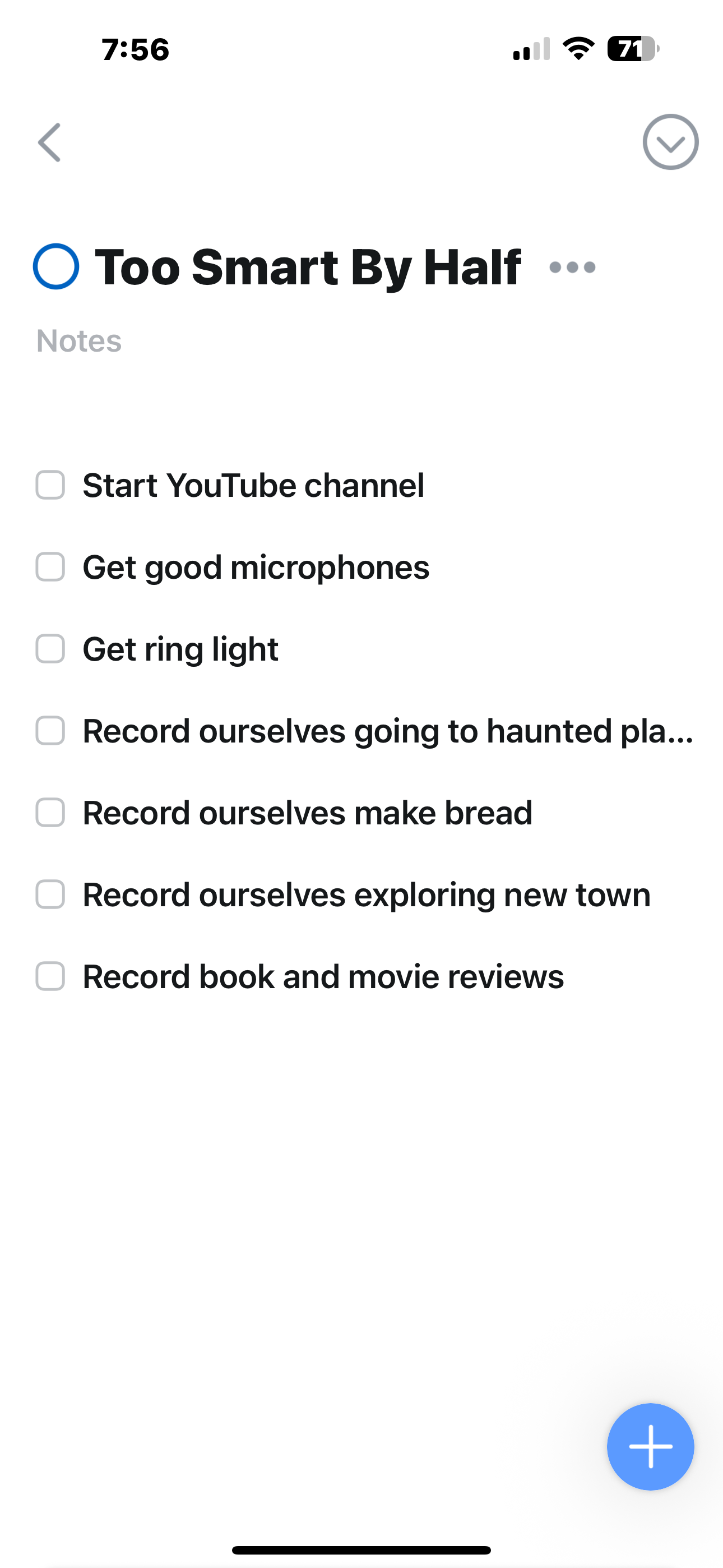 A rudimentary plan is now in my To Do list app. So I think we’ll do it. A goofy project. And a nice way to stay in touch with friends. Already looking forward to guests on our show!