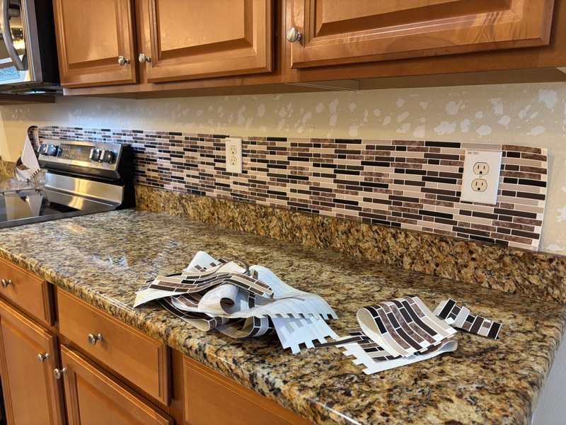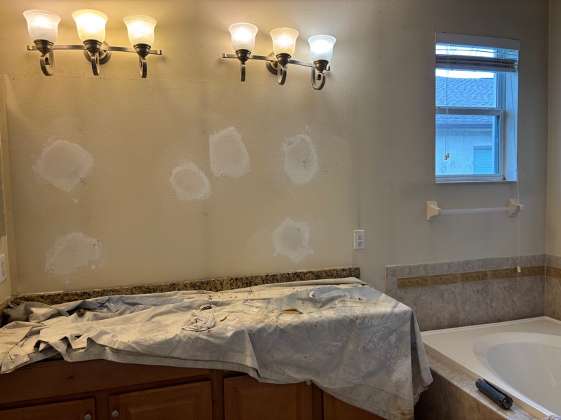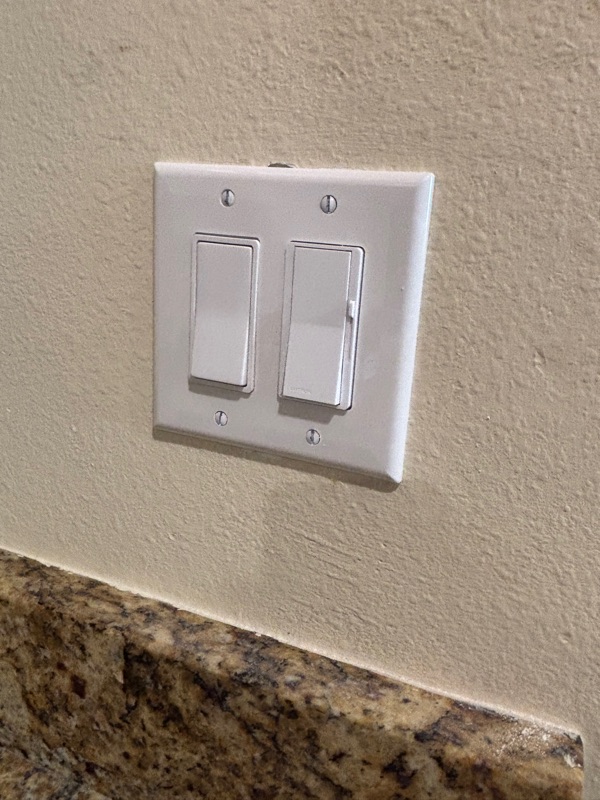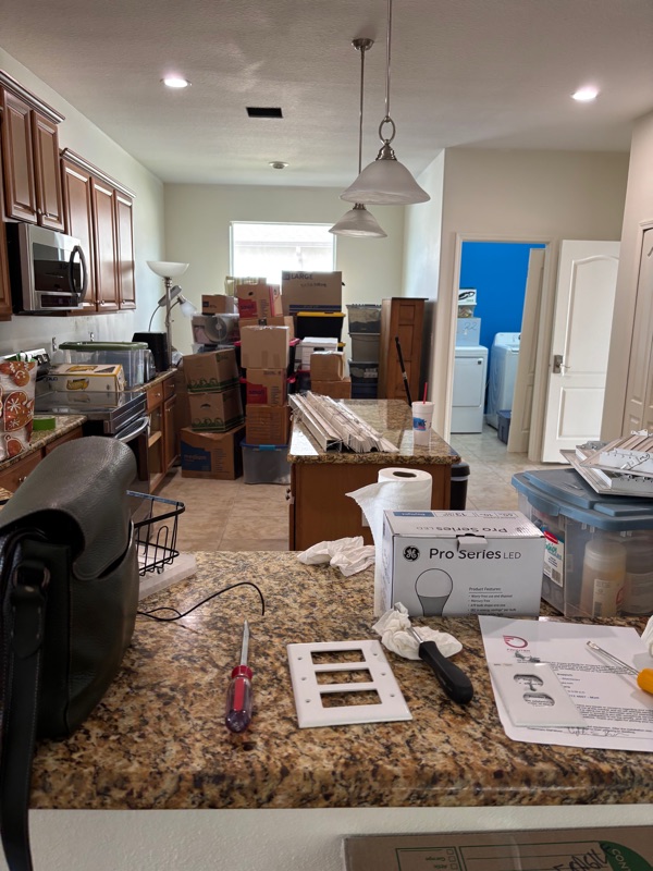 Electrician: we put another LED recessed light and added a dimmer switch in kitchen. Total cost was about $1250. Possibly going to add another LED recessed light near DR, maybe above shower in front bathroom, plus new proper plug for fridge in garage.